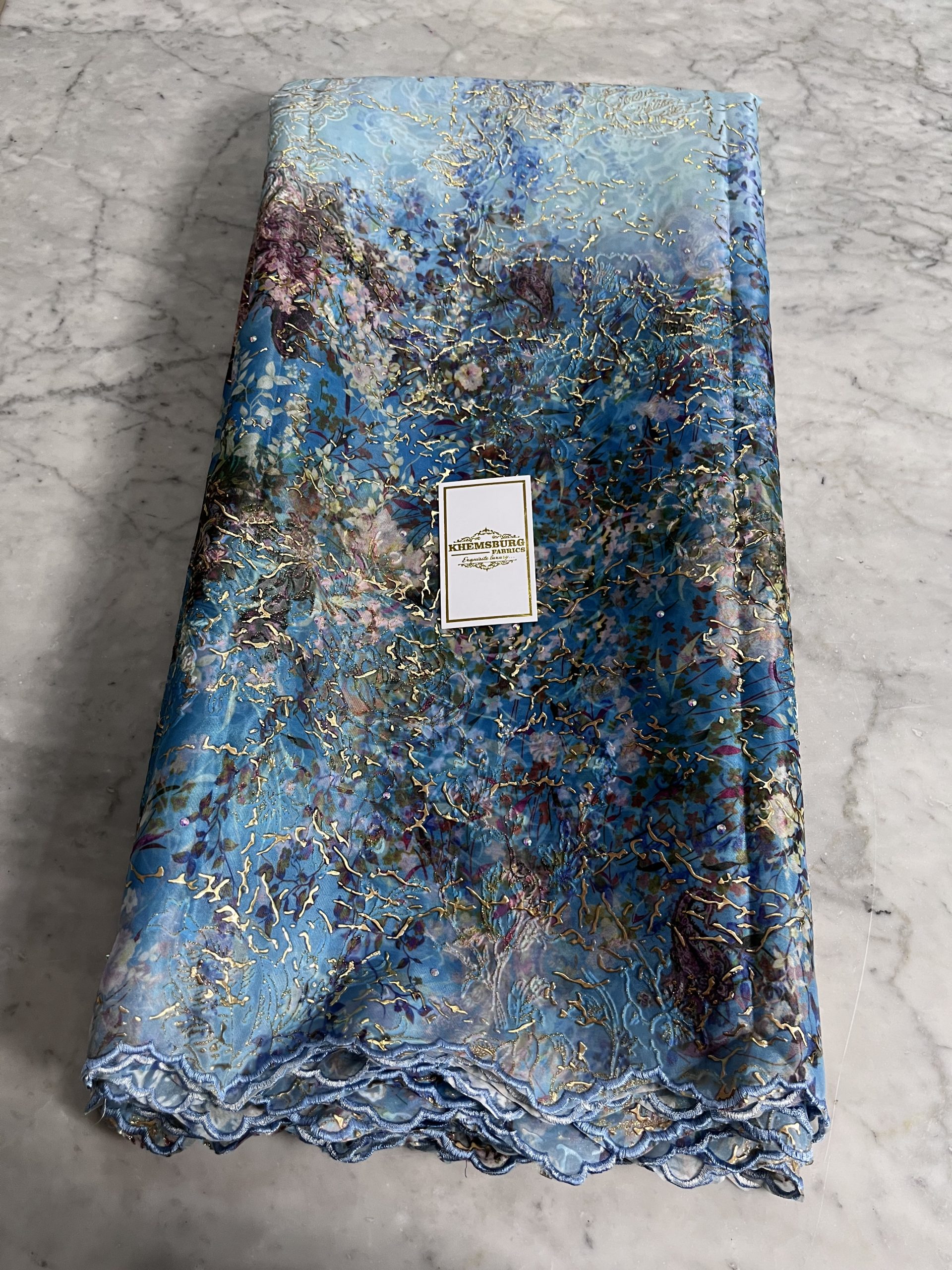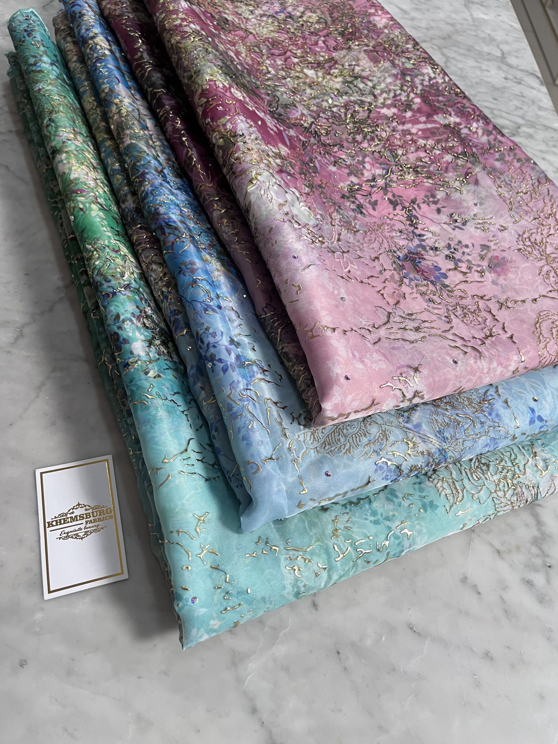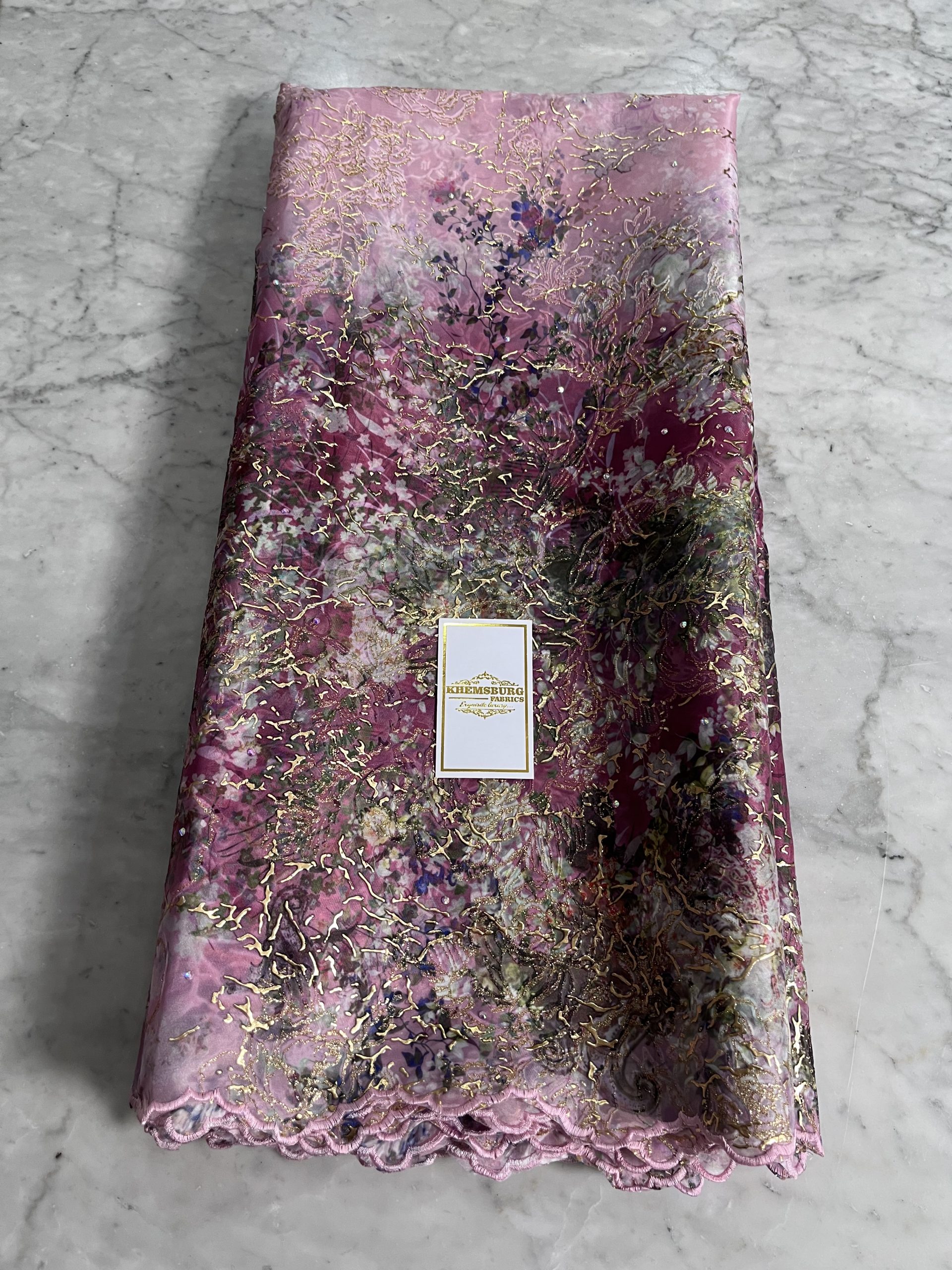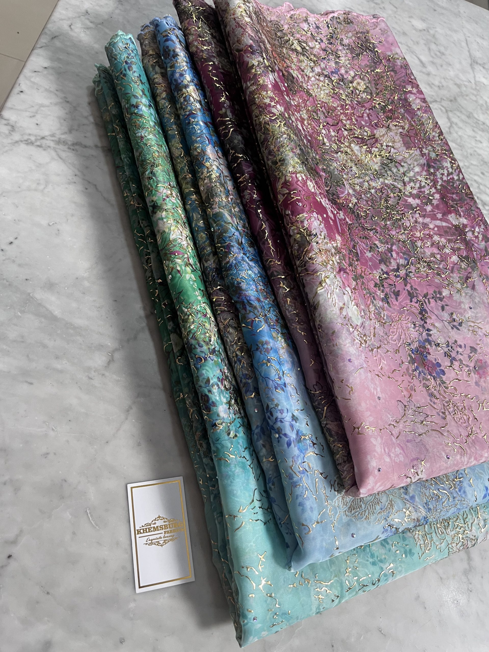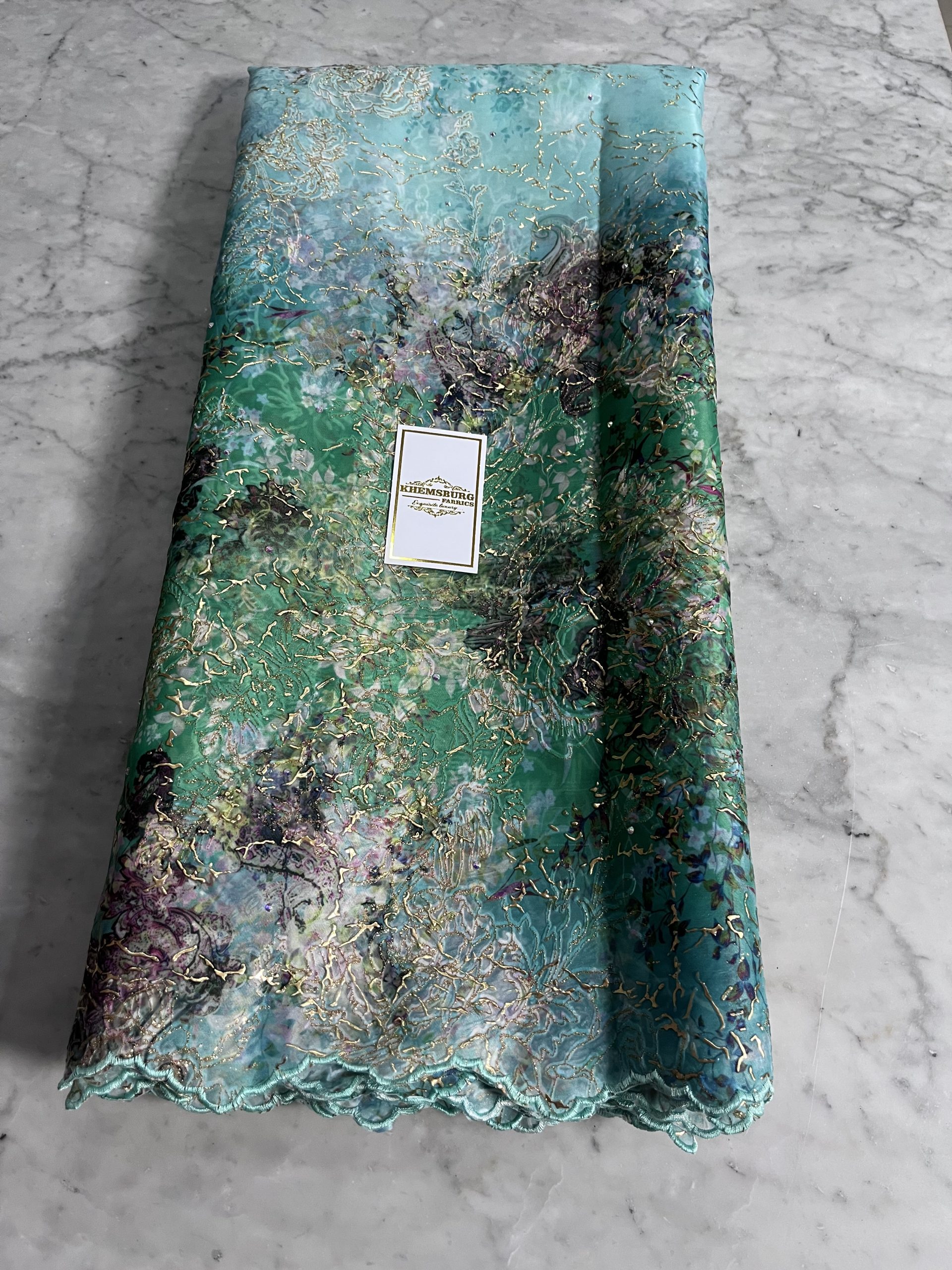 A rich blend of sophisticated, beautiful detailed multi tone floral pattern with its flocking designed in gold metallic sheen.