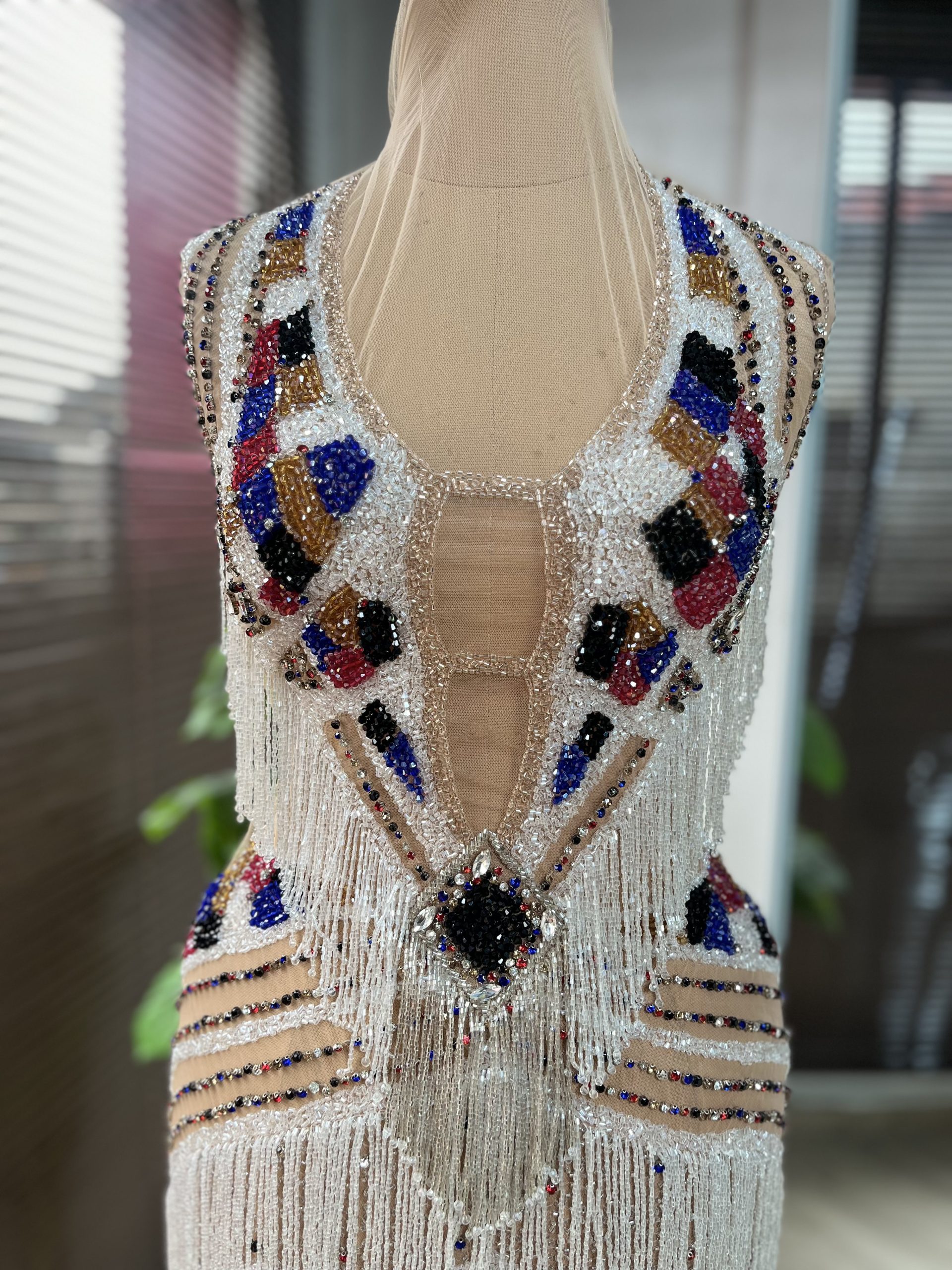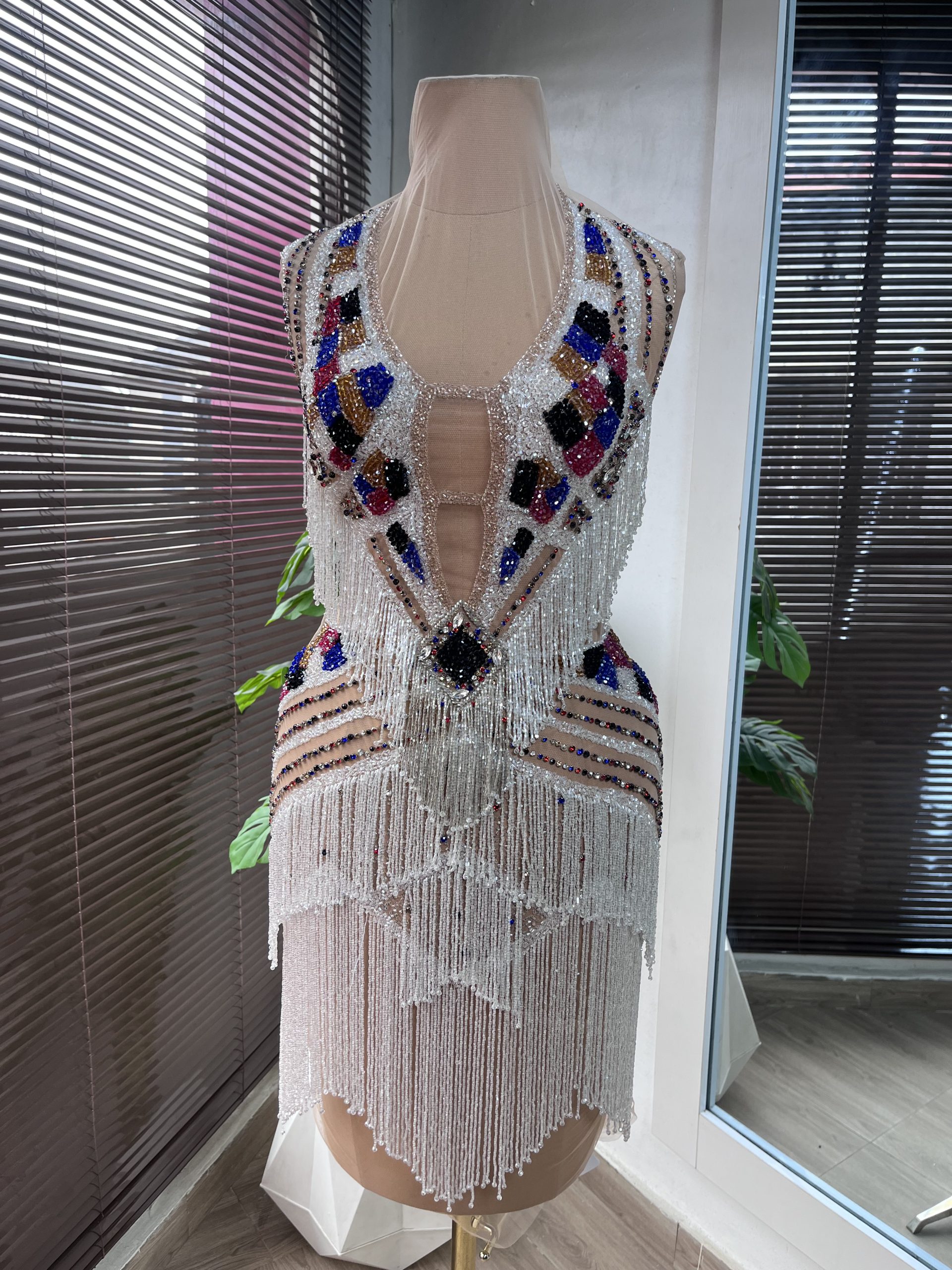This beautiful crystal pearl design is specially made in side curve shapes and fringe detailed in front and back view.