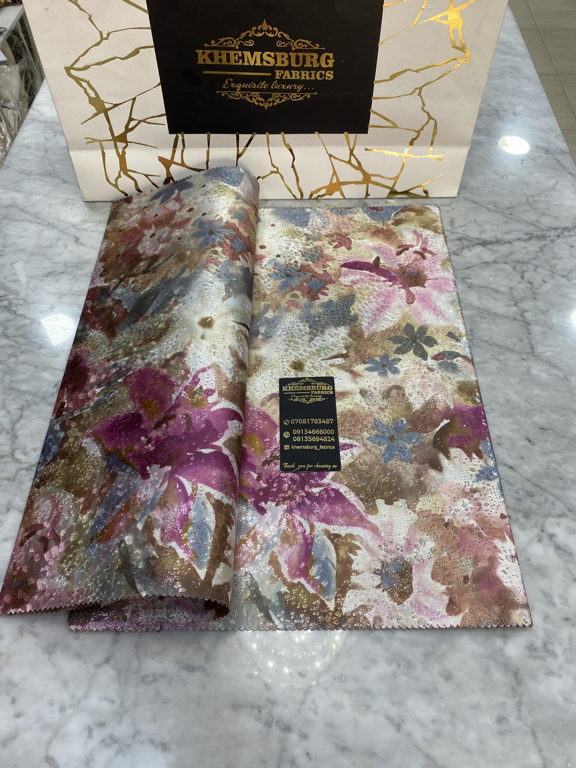 Flowery print pattern in mix yellow and purple details (Gele & Ipele).