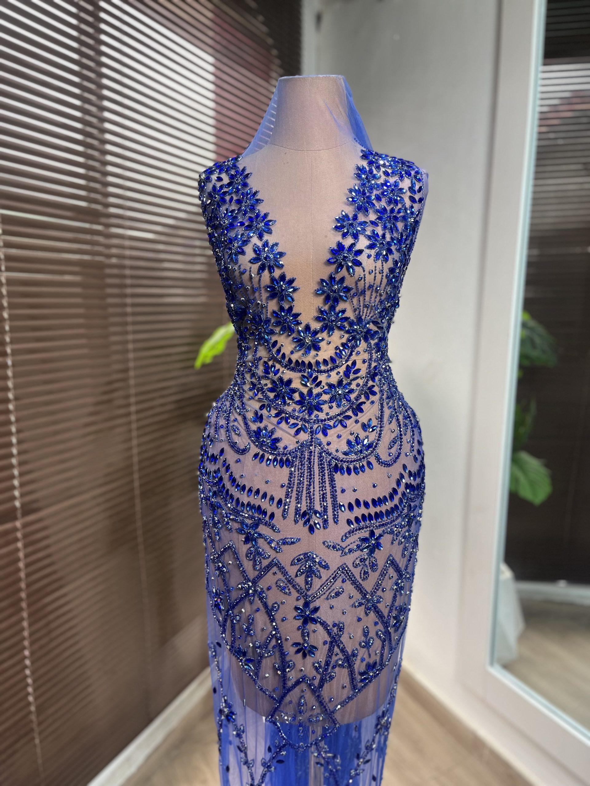 Beautiful with the most exquisite taste in royal blue all glammed up to take you into the abyss of fulfillment