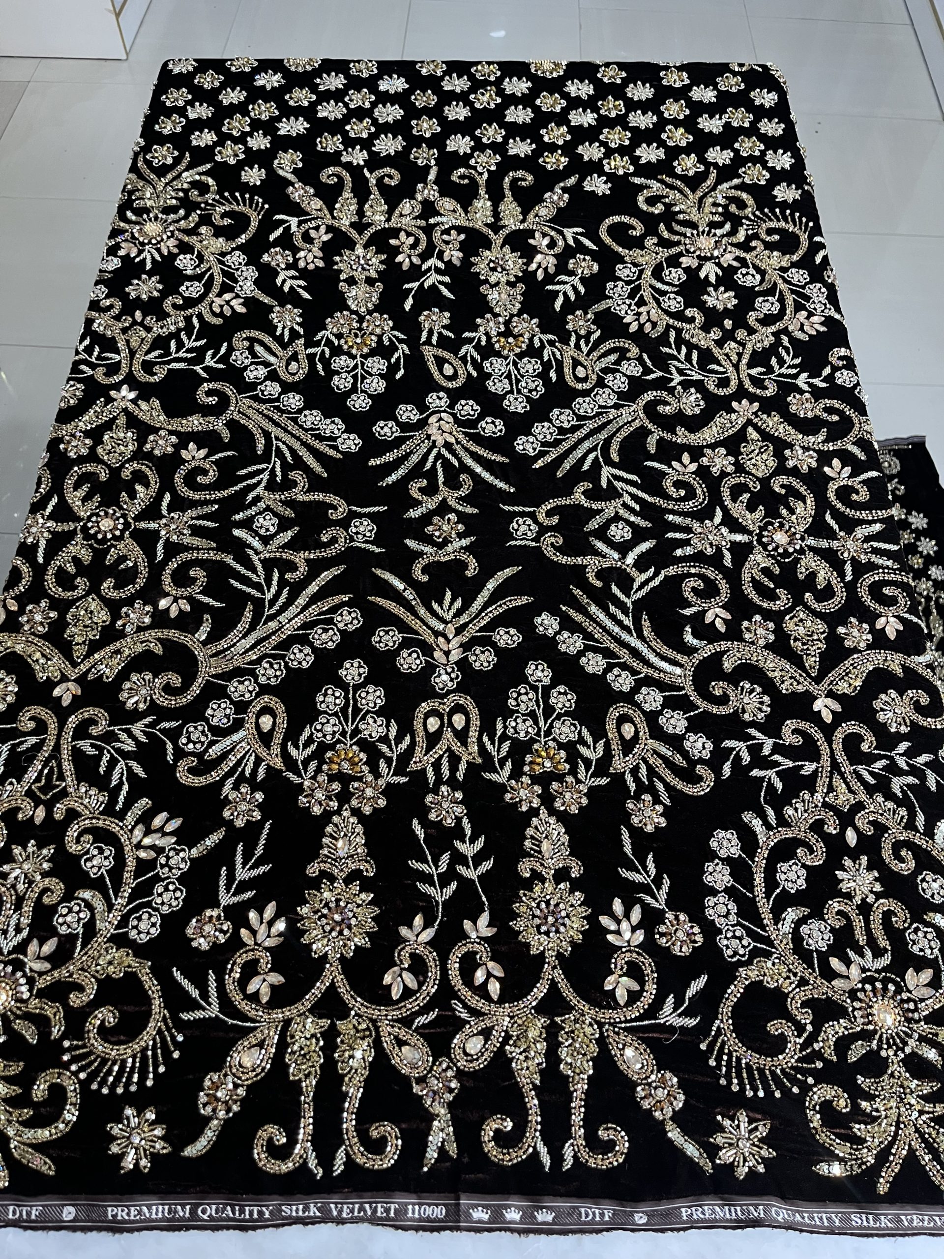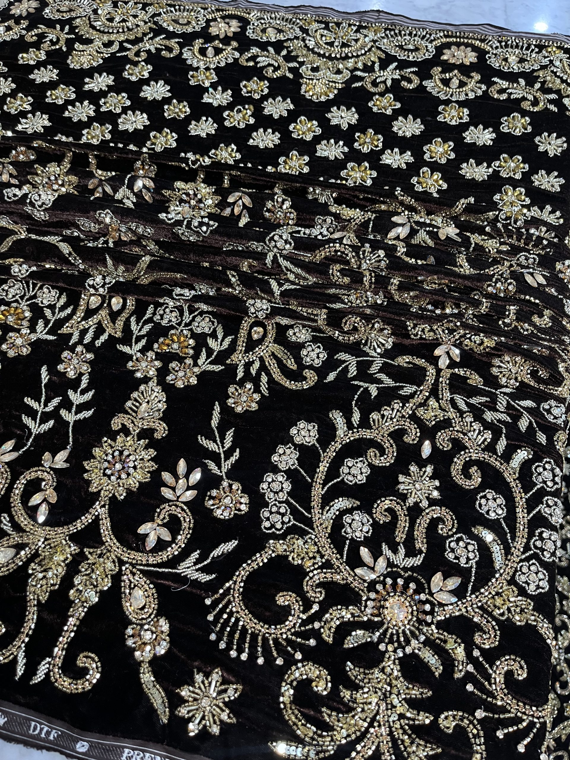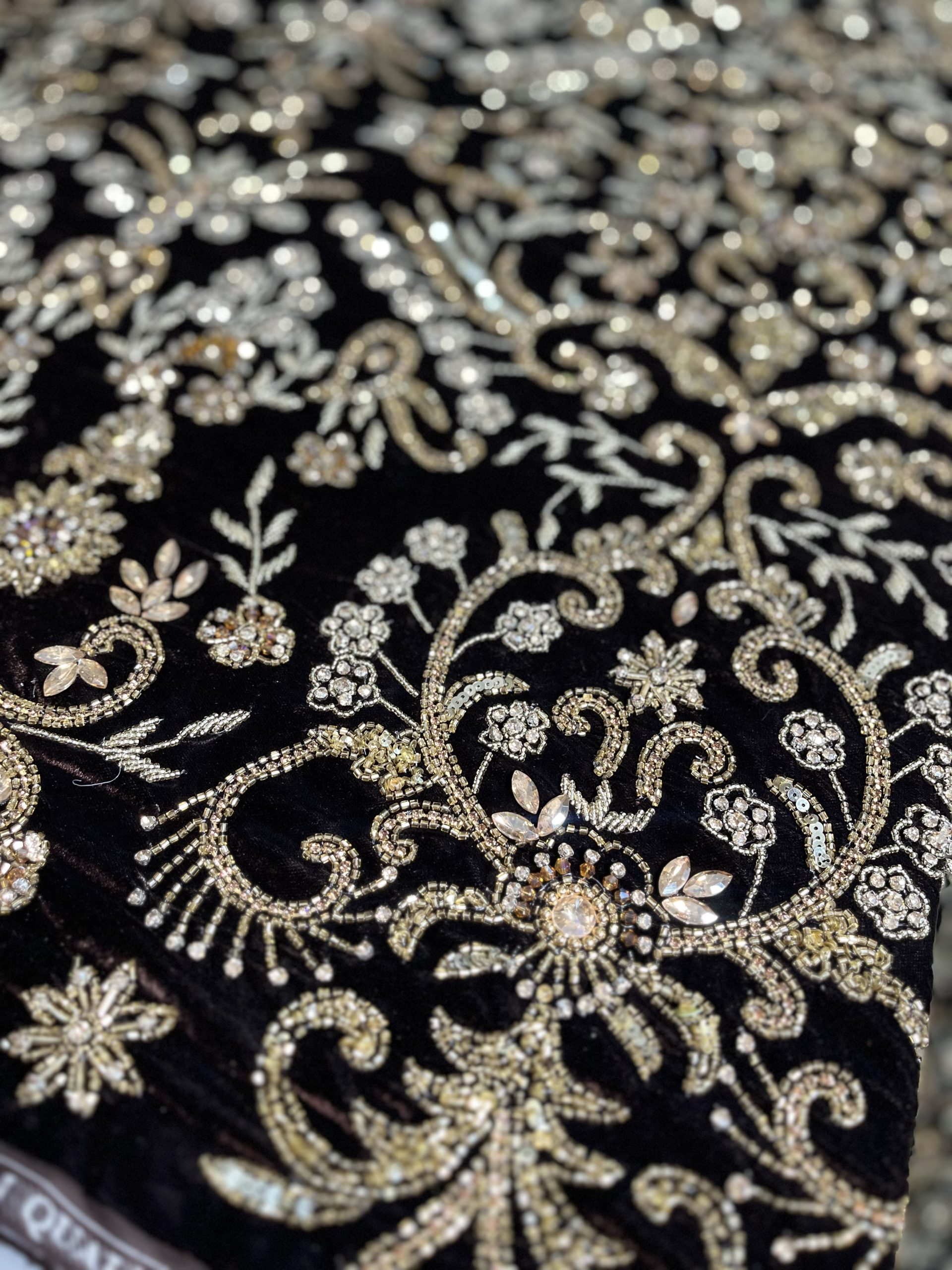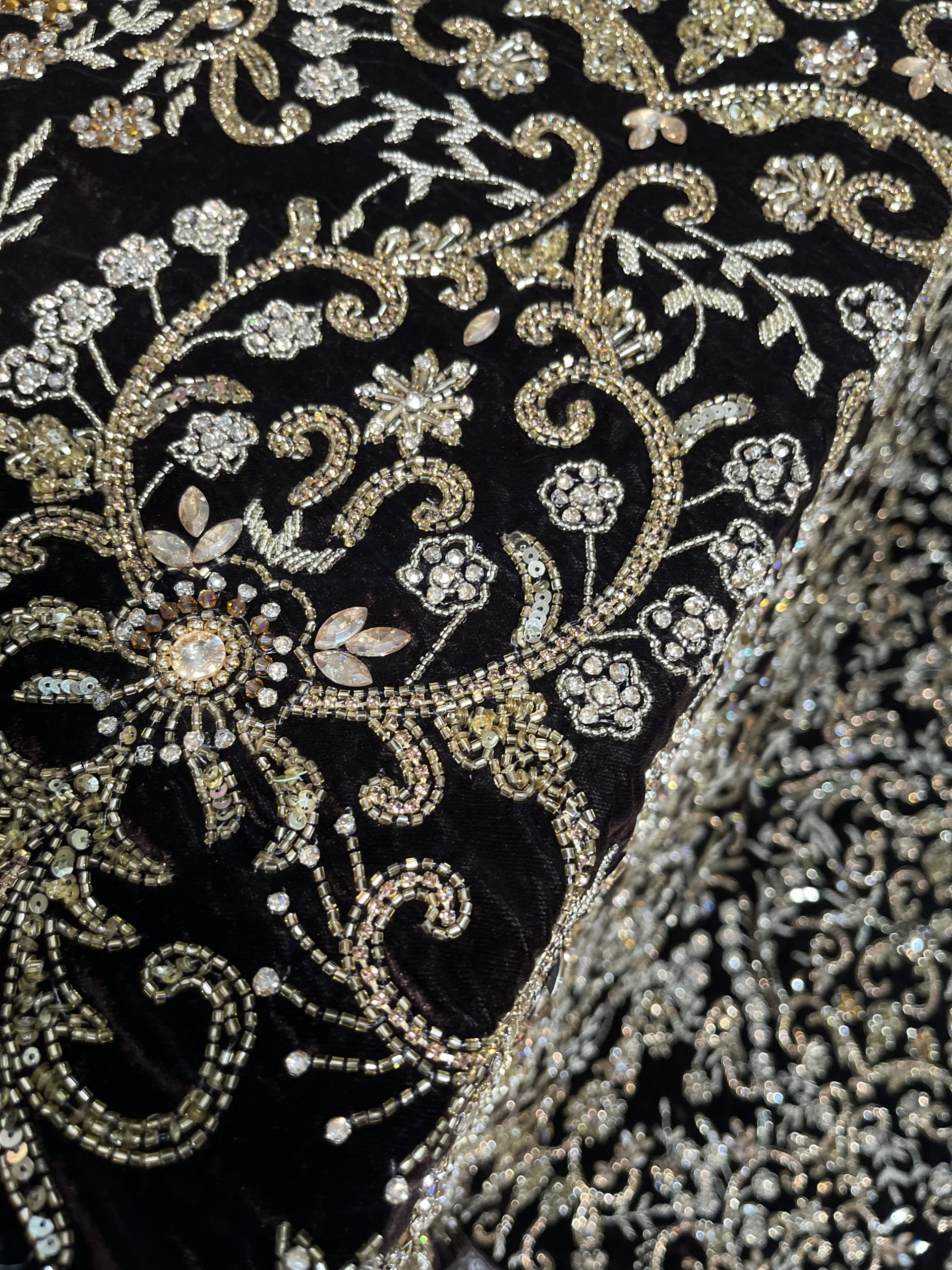 Everything velvet, pearls, intricate appliques all define this beautiful master pieces to create timeless statement.Stunning details shine through all the angles with its benevolence beauty.