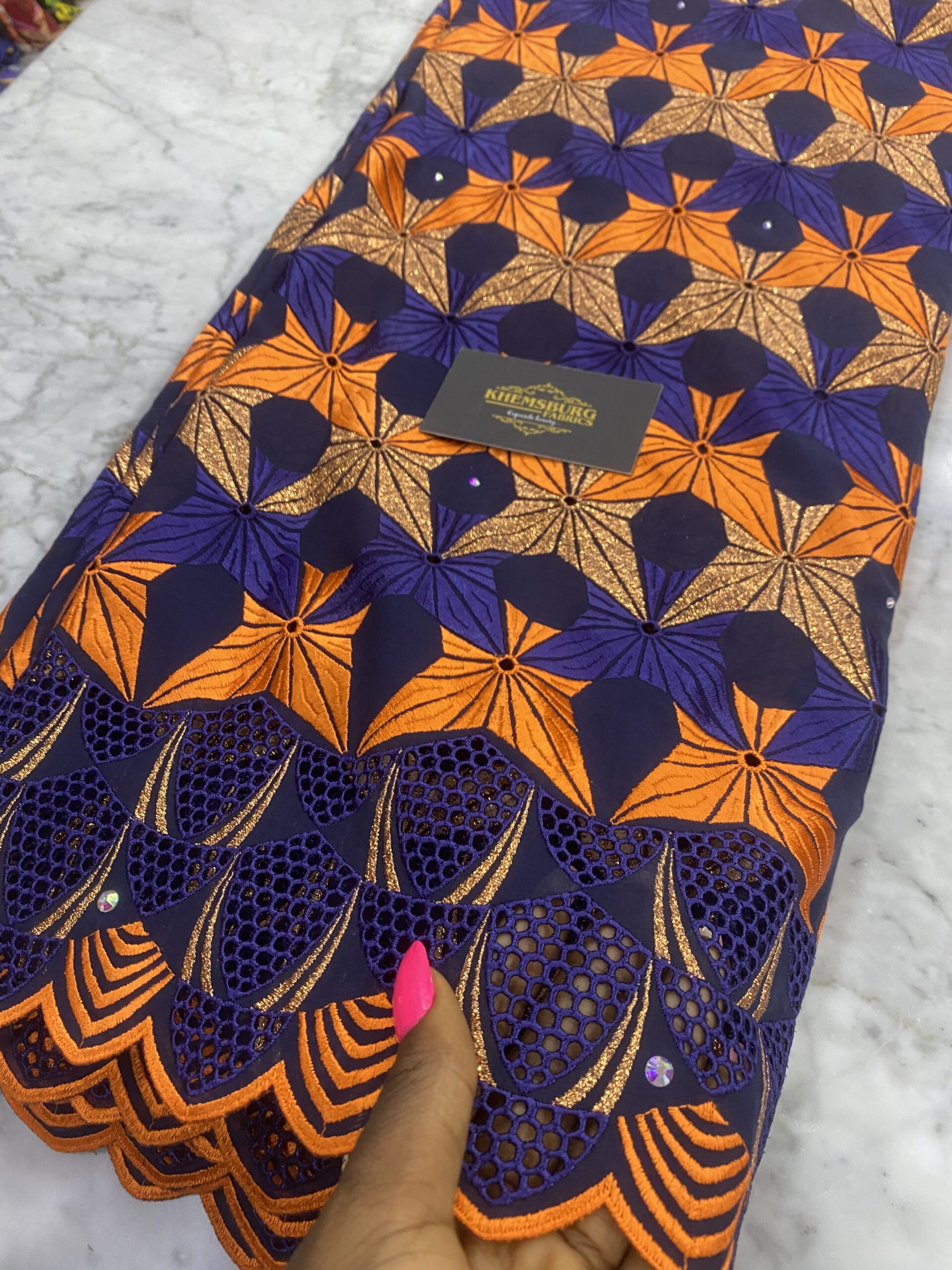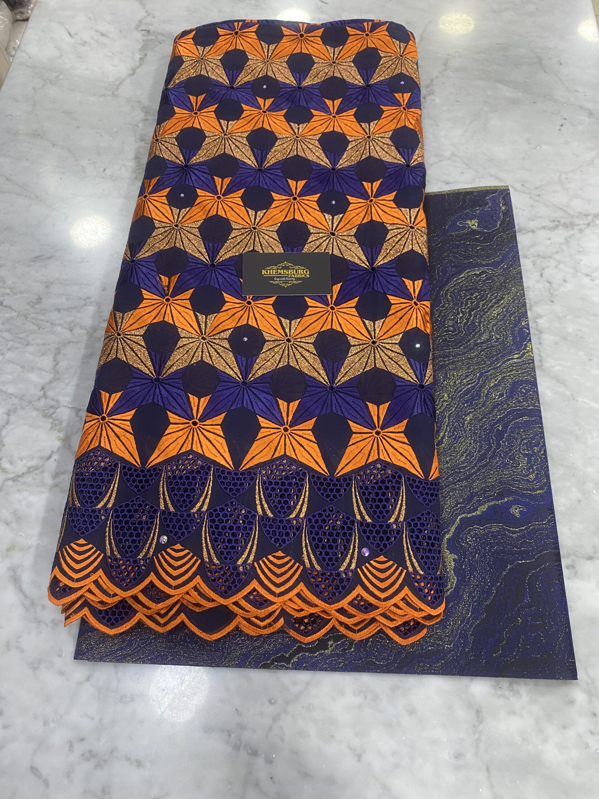 Joelle Cotton Voile is so soft and elegant. this amazing voile lace comes in navy blue and orange, this is the perfect addition to your closet!