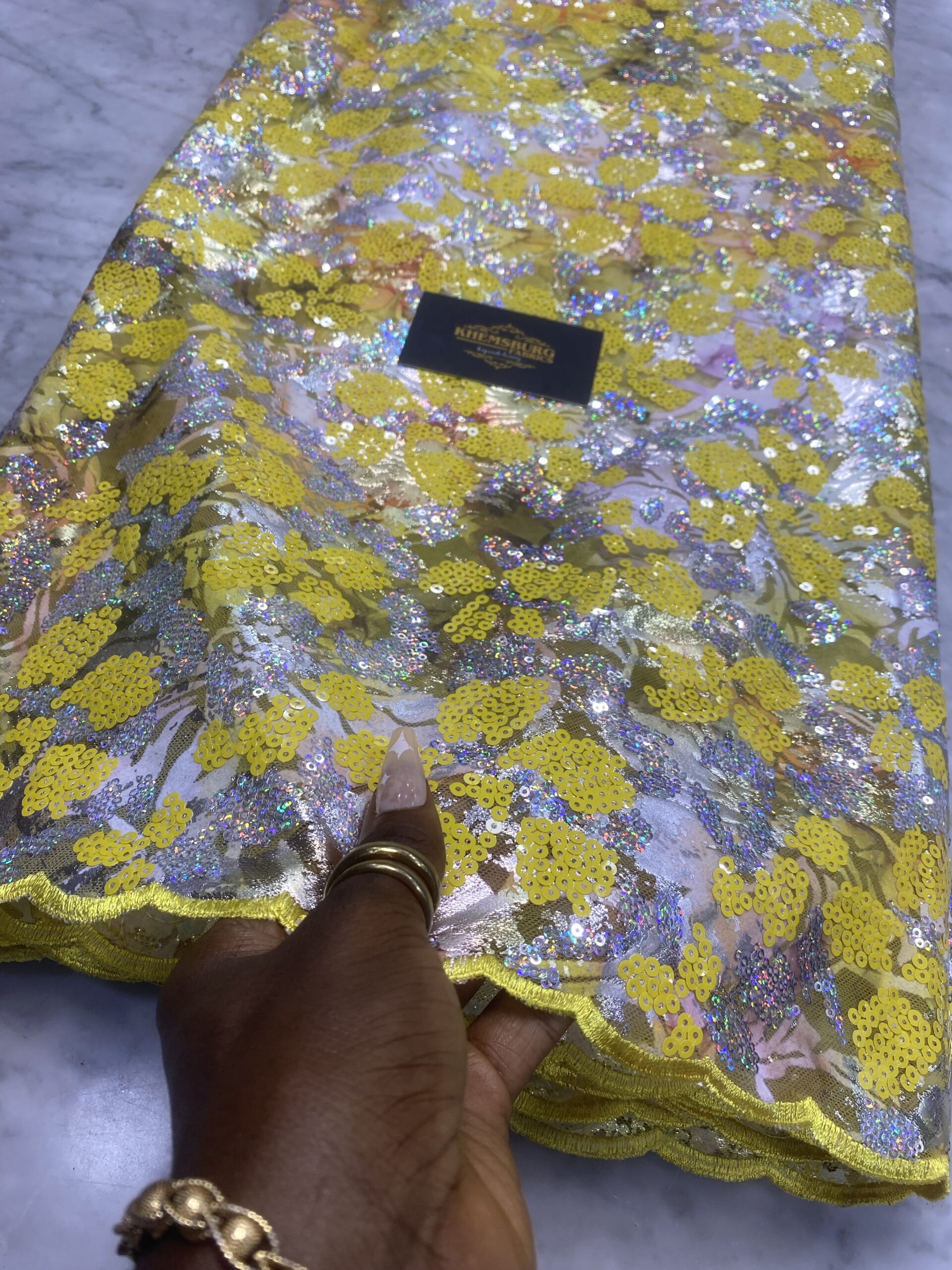 Get ready to be bombarded with this gorgeous yellow with amazing party rich style.