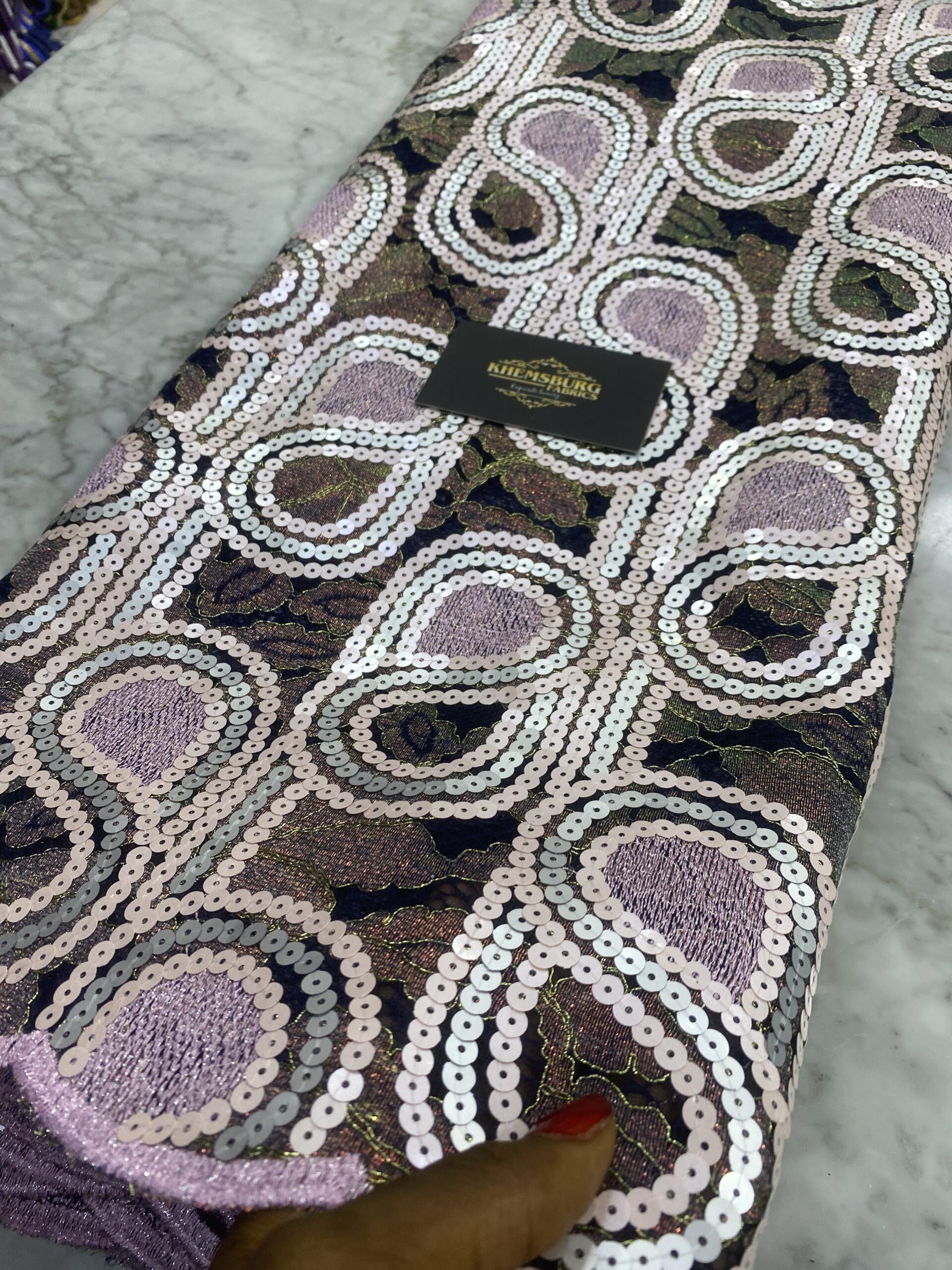 This Chantilly lace fabric in nude features a tender and exquisite design outlined with black metallic thread. With a scalloped edge, it is a great choice for parties, weddings and evening wear projects, be it a floor-sweeping gown or a cocktail dress. Our Chantilly lace is adorably shimmering and lightweight.