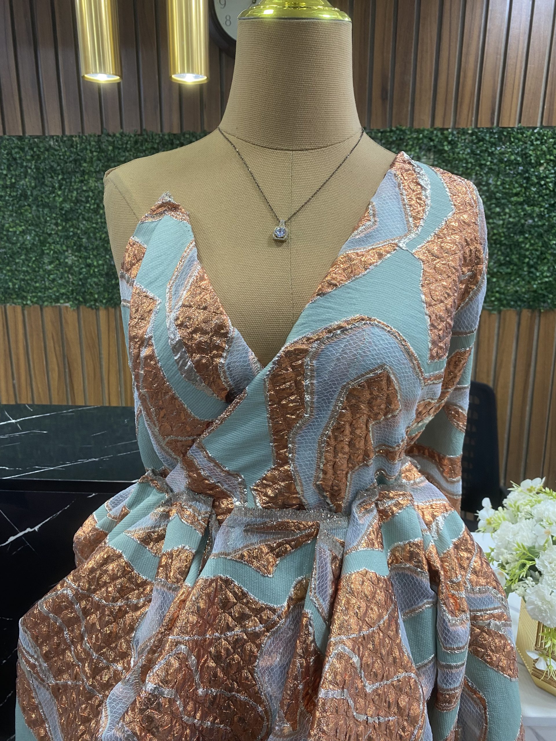 This is a metallic brocade Uniquely made with pattern print design, perfect choice for evening dress, cooperate outfit, blazers and suit set and many more.